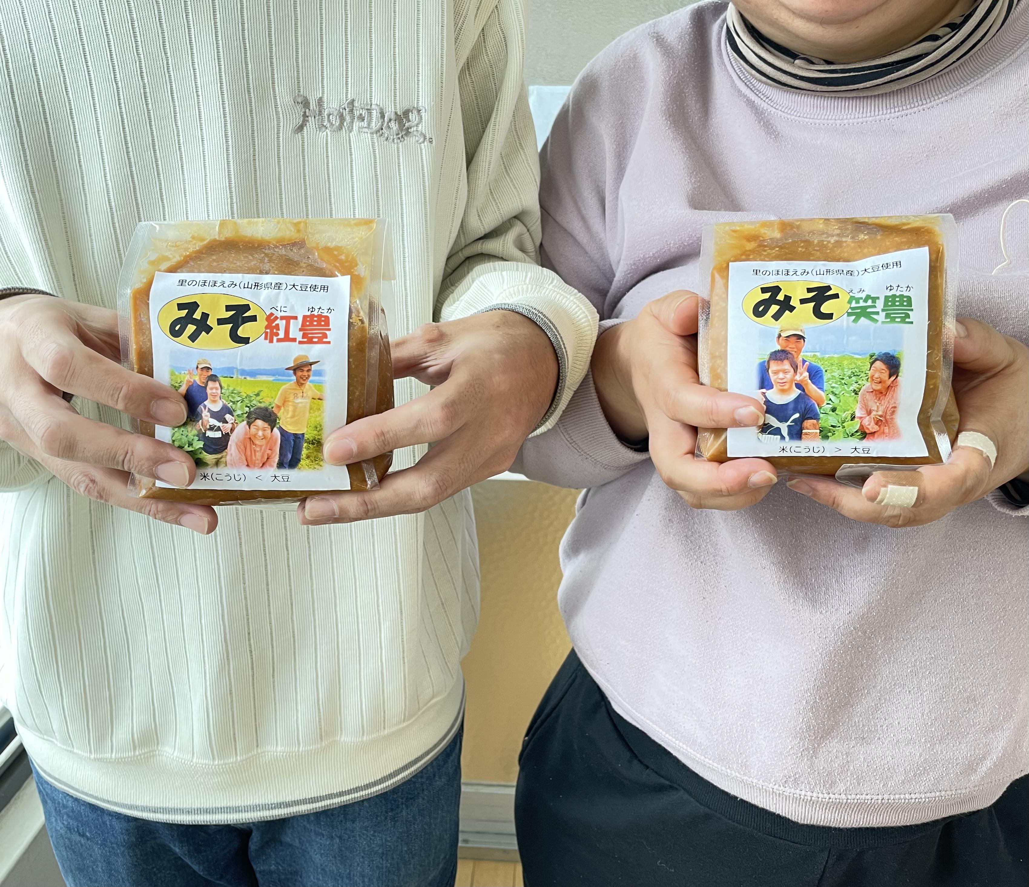 「深瀬善兵衛商店さん」と「ワークランドべにばな」の畑で採れた大豆「里のほほえみ」を使ったコラボ商品の味噌が完成しました。こだわりの素材と丁寧な仕込みで、他にはない“ここだけの味”に仕上がってます。ご期待ください!!